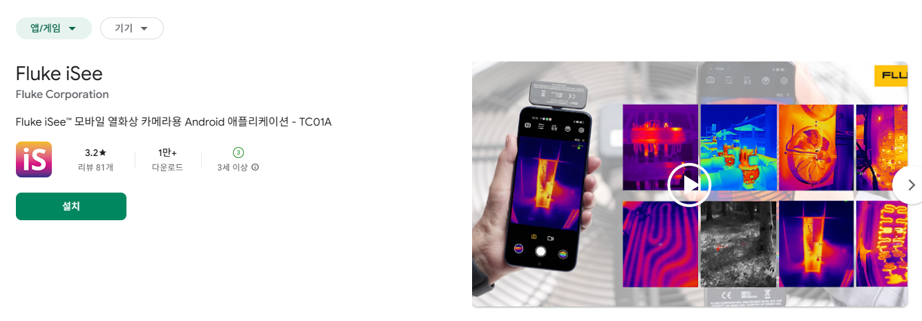 <구글 플레이스토어에서 Fluke iSee를 검색하여 다운로드>