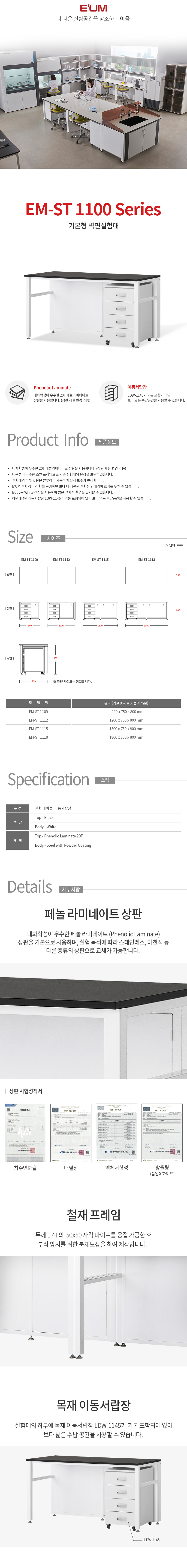 EUM EM-ST1100 SERIES 기본형 벽면실험대