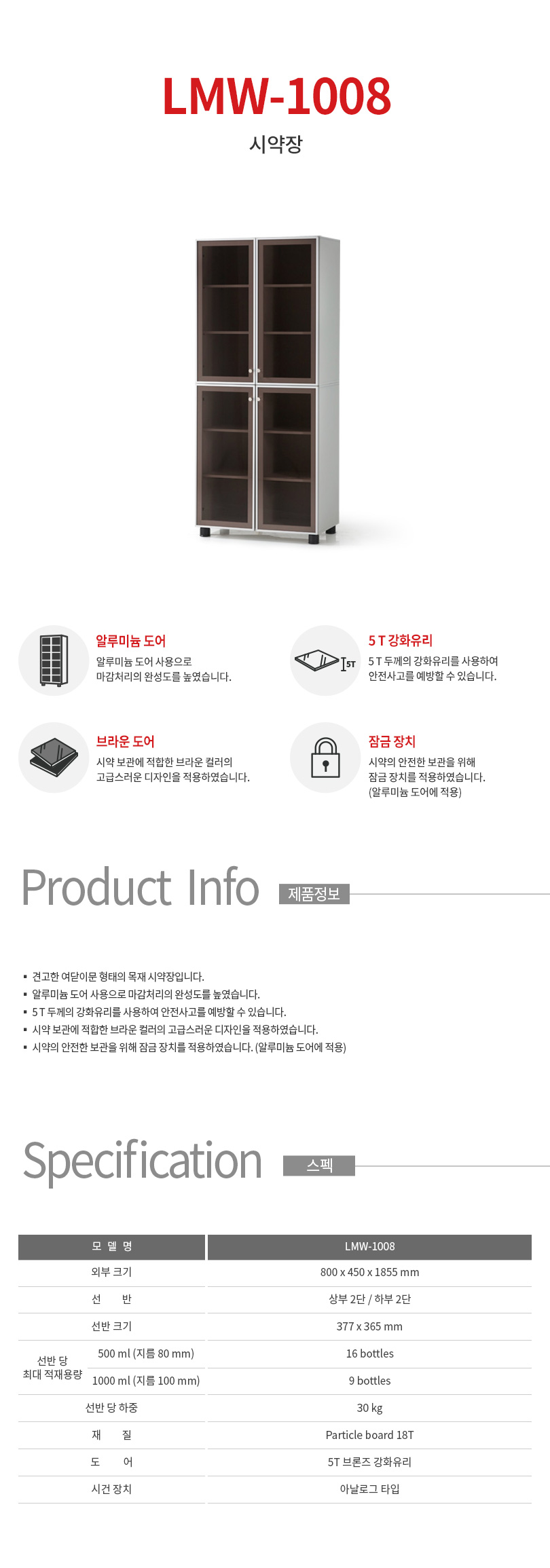 상하부 강화유리문 타입 / 800*450*1855 mm
