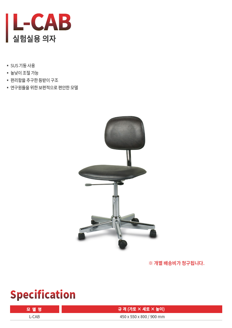 CORETECH L-CAB 실험실용 의자