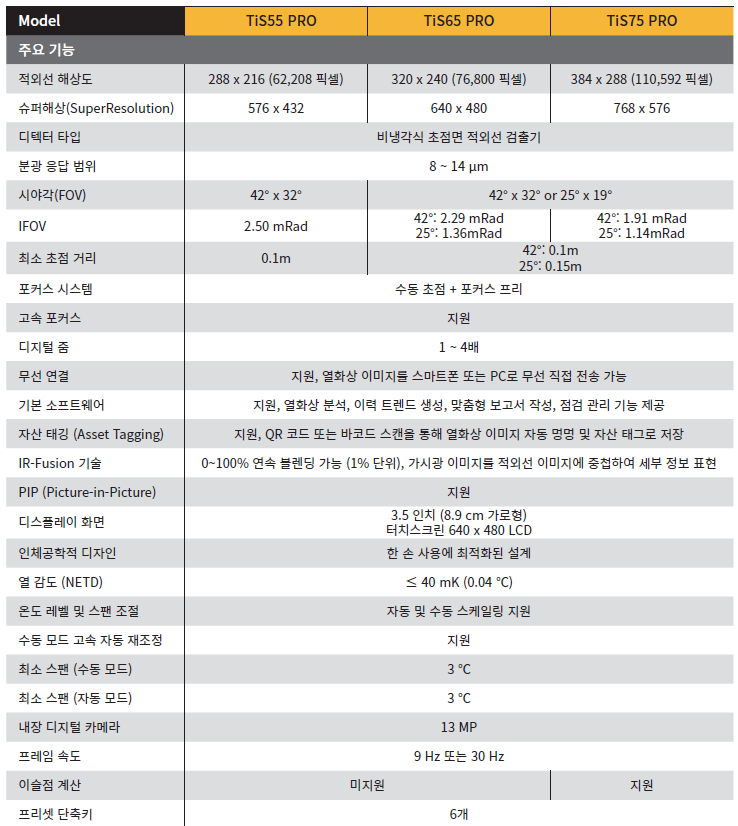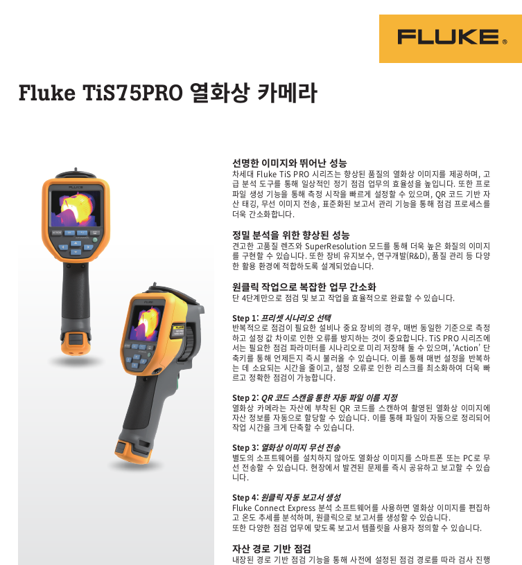 · FLUKE TiS55 PRO, TiS65 PRO, TiS75 PRO 열화상카메라 ·